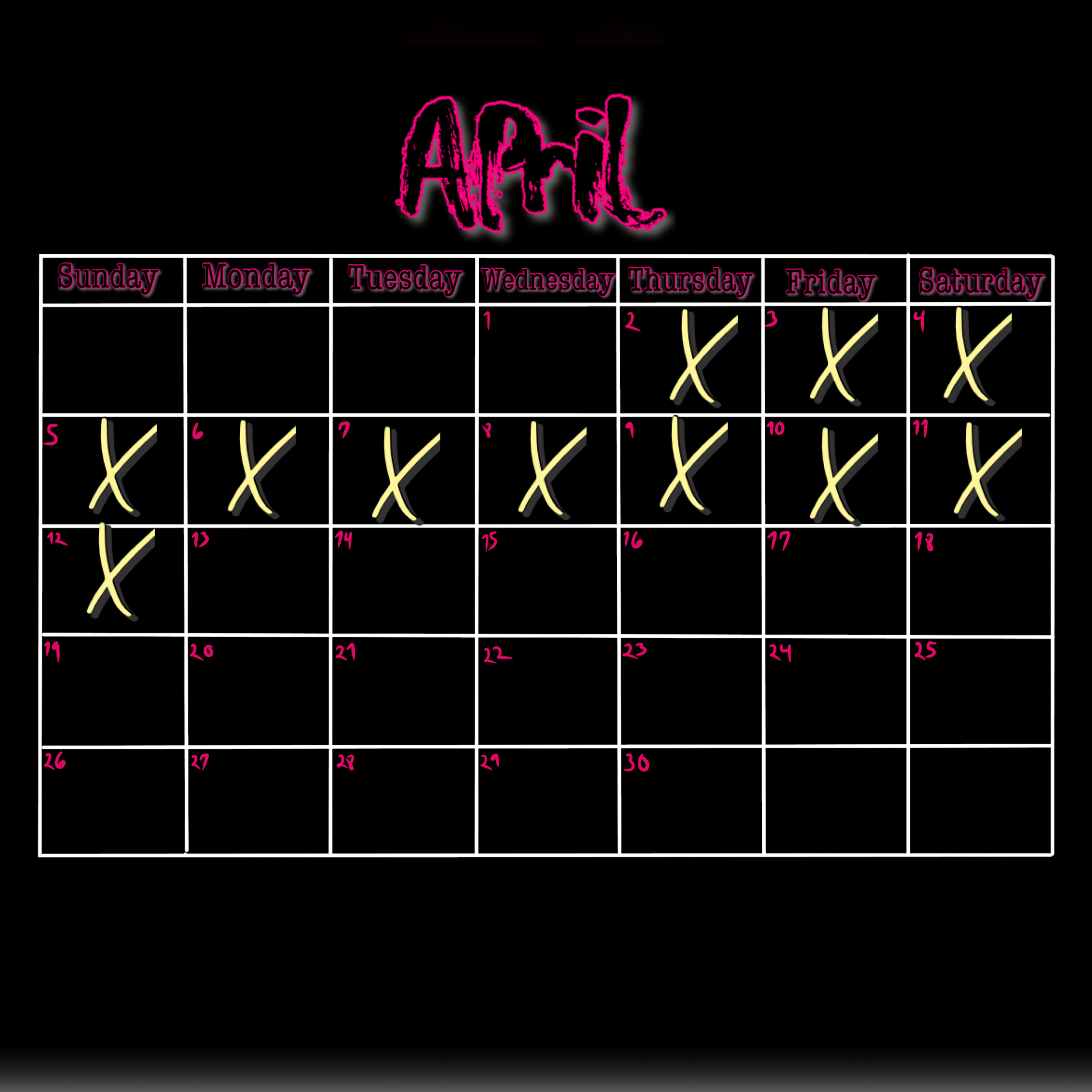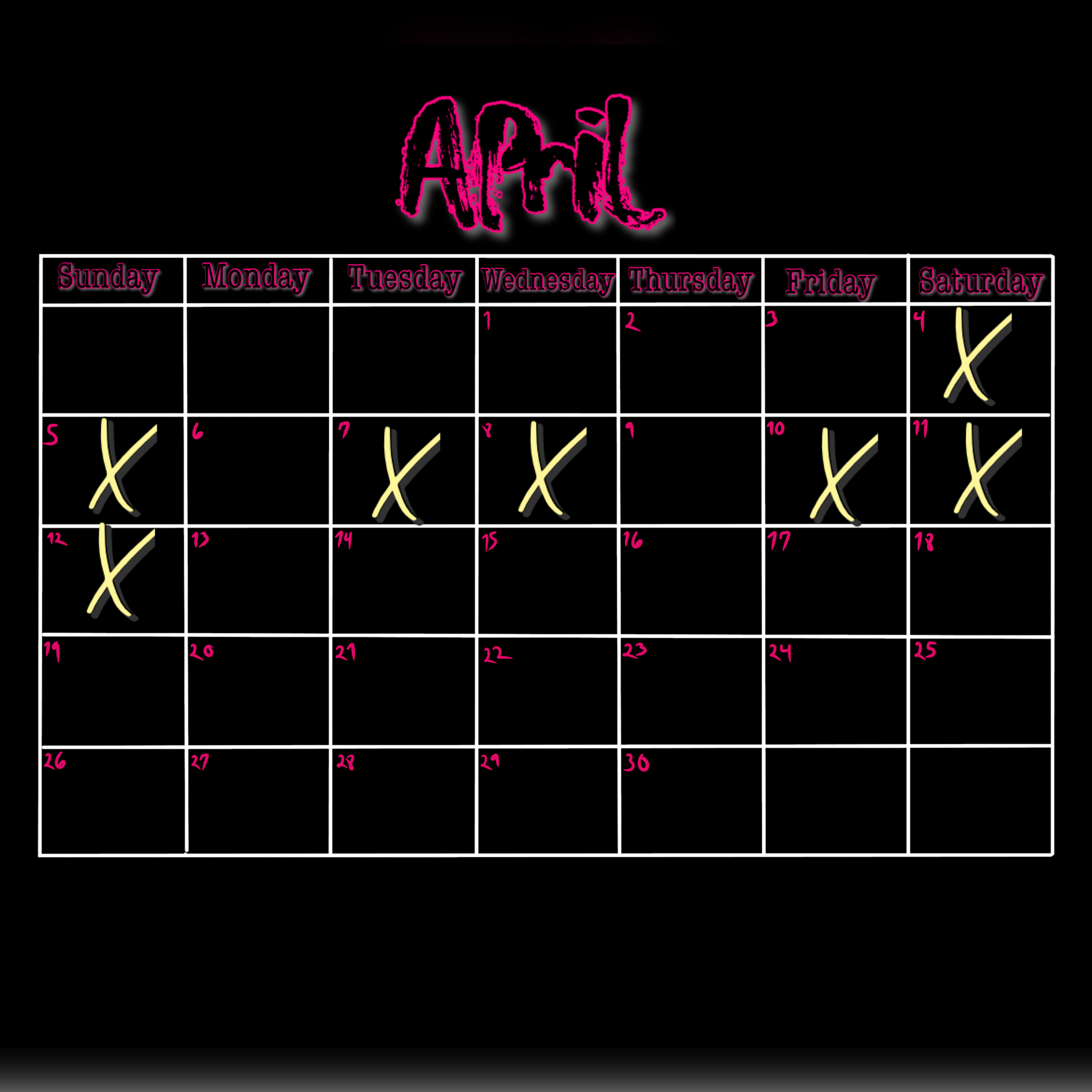 x = not available or Booked for day
